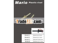 SYR-703A.T.R Plastic Rivets are the same precision-molded PP rivets used in domestic auto manufacturers, both original equipment and replacement parts. In addition, SYR-703A.T Plastic Rivets are ideal for non-conductive and non-corrosive environments. Plastic Rivets fasten plastic to plastic, plastic to metal and plastic to fiberglass.